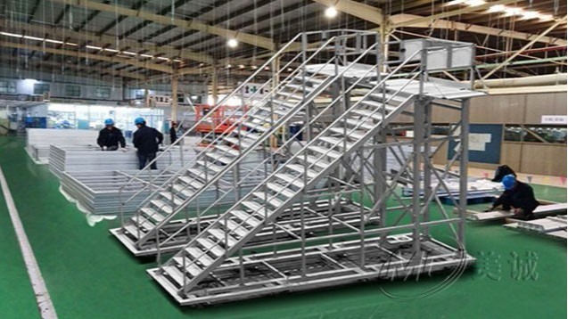 踏步工業(yè)梯由專用工業(yè)鋁型材作為框架,其需求根據(jù)客戶制定進(jìn)行免費(fèi)設(shè)計(jì)、切割加工,配件連接而組成,其中塔臺(tái)部分運(yùn)用了防滑鋁板,可以起到很好的保護(hù)作用,底部使用金屬蹄角做支撐,扶手為圓管鋁合金。