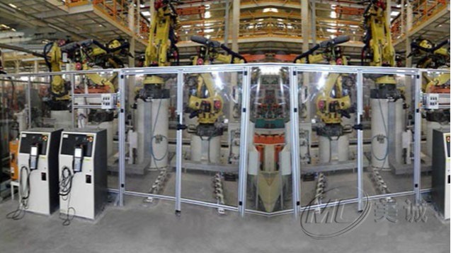 機(jī)器人防護(hù)圍欄是在正產(chǎn)生產(chǎn)外設(shè)立防護(hù)措施,局部或全部建立鋁型材防護(hù)圍欄,以保證人員和設(shè)備安全,部分區(qū)域會(huì)安裝門或留出通道便于貨物進(jìn)出和人員檢修。